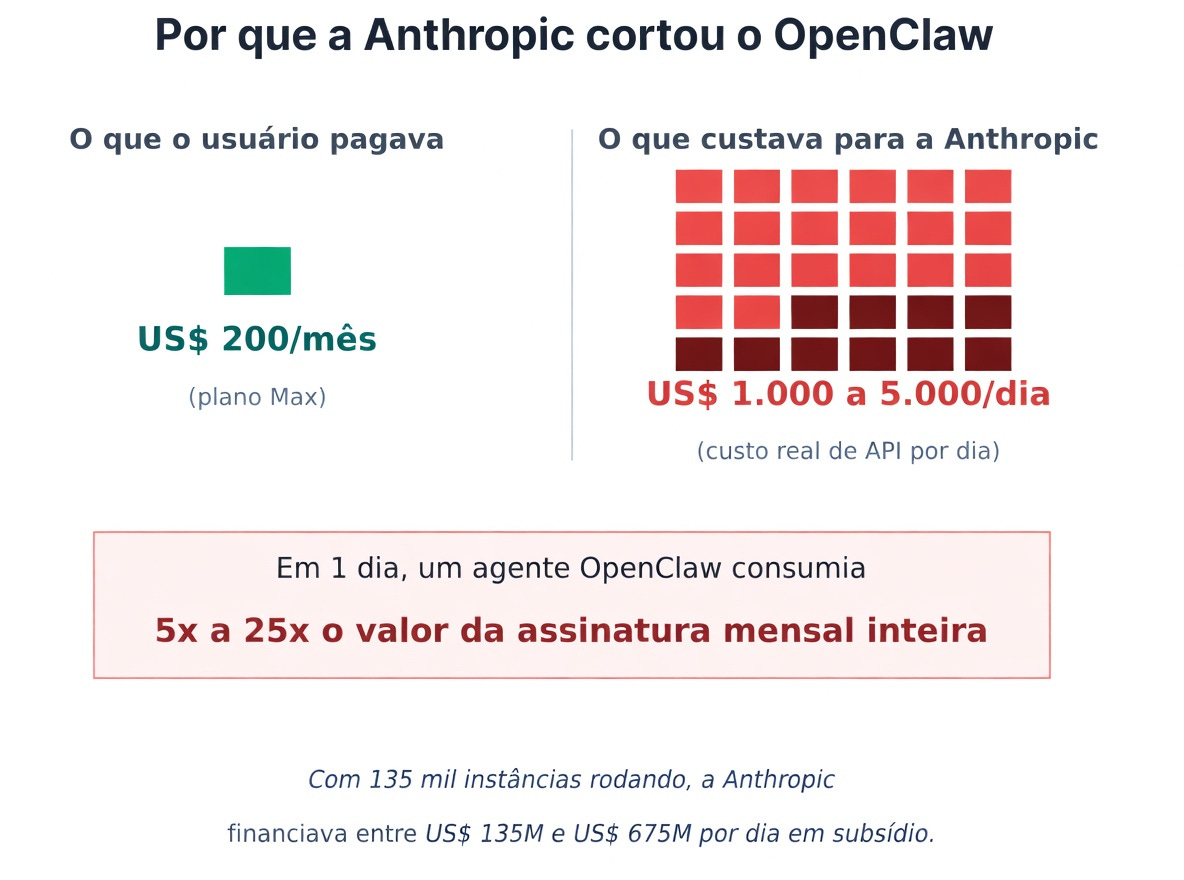 A Anthropic estava subsidiando essa diferença para cada usuário que roteava automações pelo plano fixo.