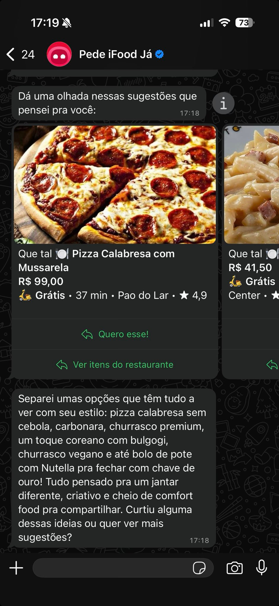 A escolha do WhatsApp como principal canal amplia o alcance. A plataforma tem mais de 147 milhões de usuários no Brasil e reduz o atrito da transação. O Ailo conversa no WhatsApp, mas a finalização do pedido acontece no app do iFood, garantindo segurança e controle sobre dados e pagamentos. Isso não foi uma decisão estratégica, faz parte da evolução do produto, em breve, toda a jornada de pedido estará no WhatsAPP, inclusive pagamento (já em testes).