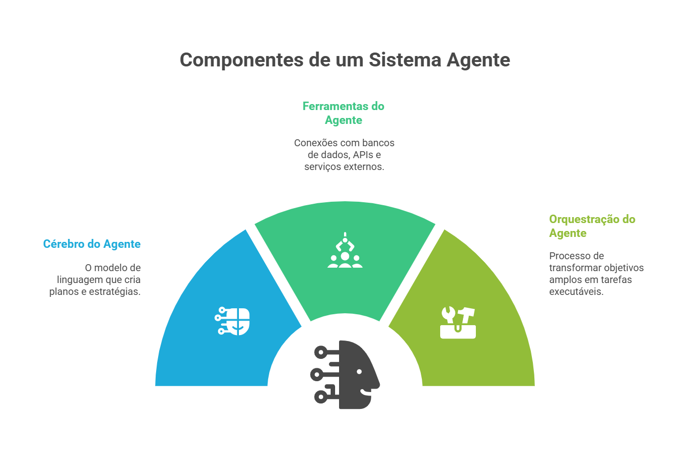 Um sistema agente combina três peças. O “cérebro”, normalmente um modelo de linguagem, cria planos. As “ferramentas” conectam o agente a bancos de dados, APIs e serviços externos. A “orquestração” transforma um objetivo amplo em subtarefas executáveis. Em laboratórios, tudo funciona. No mundo real, o agente encontra sistemas legados sem documentação, dados em silos e permissões conflitantes.
