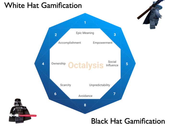 Distinção do framework Octalysis entre White Hat e Black Hat.